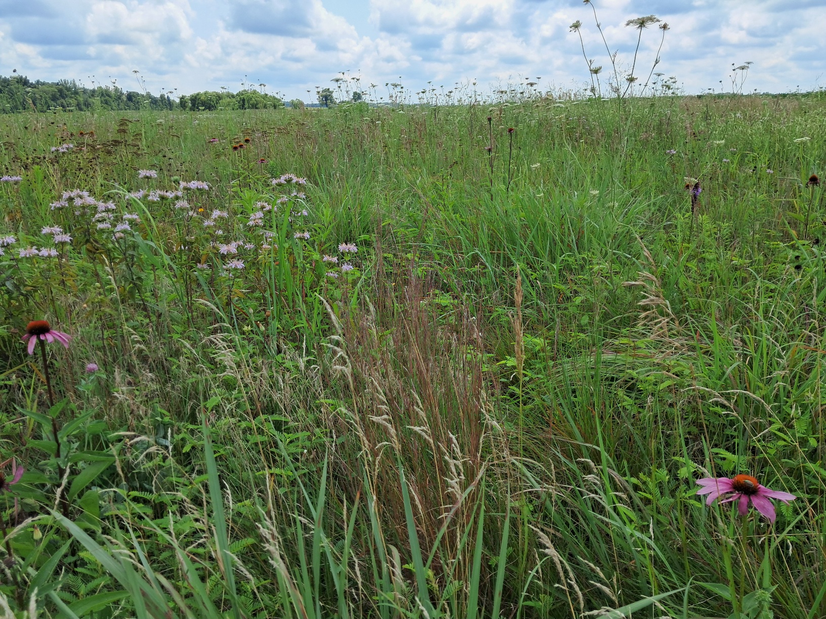 Our night at Salamonie State Park was not good - no failure on the side of the park, just people slamming car doors at 1am and 4am, while muttered conversations took place. Normally these are hours I sleep right through. I think they'd been to a bar, perhaps working, and came to the campsite when the bar closed. It's a cheap place to stay tho' I heard hoovering - the tent was flimsy, were they hoovering water at dead of night? Anyway, off by 9.40am then via Lagro (great place for trains) then over to Denver - no food apart from a cafe who's sheer porky meatyness repelled the vegetarian in me. The a touch of off road bike route before reaching Fletcher - hmm no food. My supply of energy gels was no substitute for proper food. Guy refused even the energy gummies. So we detoured to Royal Center - not just food (Family Dollar) but also a bank to replenish our cash. So we did about 50 miles with morebor less no food. On the way there we saw a bit of wildflower prairie - echinacea, monarda, and that's the photo.