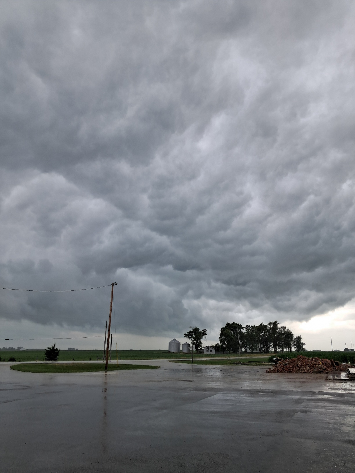 Today started off with the traditional breakfast for transam bikers - which is heaps of pancakes with a lot of maple syrup like sugaring. Great for firing yourself up for 60+ miles. There was some veggies eaten too - sensible because we've been living on filling station food for a while. The cycling was mostly pleasant and sunny with a SSW wind offering a little headwind at times. There was though a severe rainstorm as we finished the pancakes. See the photo. It looked like the whole day might be about dodging rainstorms. Initially it looked like that. A NNW wind was blowing the rainstorms towards us as we cycled but the wind switched to the more usual SSW and the sky cleared. The winds seem to strengthen withecthe heat, occasionally switching direction for moment or two. It became a hot and modestly humid day. Gas station food for lunch at Odell but there's a nice park with shelter from the sun. That was c. 40 miles done. Then Odell to Wenona with the water tower indicating the town a few miles out. Hot sun. Some patches of rudbeckia and echinaceas in areas left wild amongst the soy plants. We arrived and shopped at the Family Dollar. And not just us but two other transam bicycles were in the park by mid evening. Jake from Maui (going east) and Isaac from Brooklyn (going west, yes this means he is about to overtake us, we treat this nonchalantly - not in a hurry, plane to catch isn't until Sept, youth before age, etc). And we're also told storms (T storms) are coming in (by two different people) and it would be wise to camp under the cover of the pavilion. Well Guy is the most stubborn person I know so that made no impression. The tent can be pitched indoors with clever tying if guy ropes to furniture. It is also true this tent has survived torrential rain so it should be OK. Obviously thunderbolts are not going to be stopped by our tent but... Tomorrow may be, at best perhaps, a repeat of today 's weather.