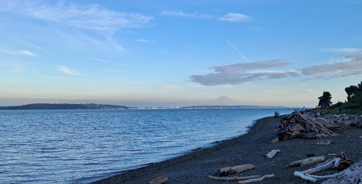 A good deal of time was spent trying to sort out the bike boxes we need in order to get our bikes back to the UK. There aren't any boxes at the airport. I telephoned a couple of downtown Seattle bike shops but without luck though I did have an excellent conversation about homelessness in America! Homeless people are often on bikes because of the sprawling nature of American cities. And they are not, of course, a priority for developers who see big profits in building the kind of plush homes Bainbridge Island has by the score - it's low density suburbia across a fair part of the island though with some beautiful fragments of old forest and public parks too. Social housing is nowhere, therefore, on the political agenda. This came from a man that supported the record breaking tandem ride across the USA in 10 days back in the 1980s and had some ideas about social housing... Hmm I digress... Anyway we eventually decided to try Amtrak which advertises bike boxes and has a station, of course, in Seattle - but that's for tomorrow's visit to Seattle. We then went down to Bainbridge, the town, shopped at Safeway, ahah pumpkin ale!, and got caught up with a library sale that left us considerably heavier. Guy has a great eye for a book and we are going to have to get rid of some before the flight. Then on to Fletcher Landing - a beauty spot on the west coast and a former centre of entertainment - but that was back in 1869 and shortly after. Now it is a pleasant bit of west facing coast where you can paddle, launch a kayak or paddleboard, or just paddle. In the USA property rights can extend down to the low tide - not a usual thing in the UK - so beach access seems a lot more tricky than in the UK. I wondered why there was no coastal path on San Juan Island - it would be glorious but there's little notion of a path over private land or along the shore. Then we came back to the campground, with the school and commuter rush hour seemingly all around us. The speed limit is 20 or 25 for much of the time and although widely flouted it seems not to have caused the absurd rage that 20mph has produced in Wales. It seems accepted (outside my house) but often inconvenient (outside your house)... I'm now reading Julian Barnes' The Man in the Red Coat at high speed so it doesn't add to our baggage but goes to a US used books stack somewhere... We are still here. Tomorrow a visit to Seattle. The photo is a view across the sea to Seattle - note the huge mountain to the right of Seattle, this is Mount Rainier and at 14399' the highest mountain in Washington State. It's a bit of a worry potentially because it's an active volcano in a populous area of the 'states.