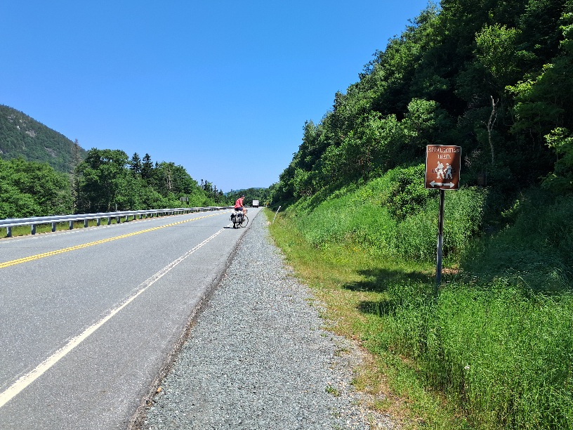 The last two days have been 50 mile days, but today we pushed the boat out a bit and did something like 66 miles on the route and about 71 in total. We started well, hurtling along and up to the col where the Appalachian Trail crosses our route. Then down to the Connecticut River, a slight detour to avoid a closed bridge and then, well, we were now in Vermont, our fourth state, and so we got a bit lost around Thetford Center and did a few miles in the wrong direction. We did eventually read our map guide carefully and found the Tucker Hills Road which took us onto our last big climb of the day, up over the 1500' line. Then down to a town called Sharon. Surprisingly upmarket place with a super shop and deli, though the breakfast cereals cost £5 for Grandpa's Honey Loops....! The beer was well priced and I bought a modestly alcoholic pale ale - Founders Session Pale. Fruity - a nice contrast to the Pig's Ear Brown Ale dragged over the hillsin a pannier. We hauled up at Henderson's Hideaway, cheap but no showers, a dip in the river suffices, just north of Sharon. Somnolence beckons, miles like that make you sleepy. We arrived at 7.30pm...