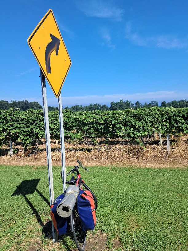 Heading ever west, we have to get past Lake Erie in order to then head through the Mid West. So today was a day of following the gently undulating coast of the lake. It has been a hot day, but pleasantly so. We set off in decent time, about 9.40am, piling any 'trash' into a bin. Recycling is behind the times here, the wastage of really nice plastic and glass bottles amazing. The coast road was perfect for a fast ride and today we averaged over 12mph, in the morning over 13mph when there was a hint of a tailwind, yes! Powered along past extensive vineyards - local wines for $15. There was a sweet scene in a Dollar General where the young black man behind the counter was helping a classic genteel little old lady with her groceries and exchanging the local news - thank goodness smaller grocery shops still exist, and with kind chatty staff. I felt grateful for my local coop. Not a frequent sensation... We pressed on. Erie, the town of the lake, is a sprawl, had a maritime museum of which I was excessively sceptical - after all how many naval victories or tremendous trade routes can occur on a lake between two friendly countries? Well in its own modest way Lake Erie can give us the delights of brigs and ships and trade and fishing. There's even a modest brig to visit (Niagara). The curse of having lots more miles to do meant I just viewed the model. The ship is a bit titchy compared with the Wavertree viewed in New York. Apparently the Great Lakes were ground out by glaciers, dammed up by moraines, and have been larger. Lake Erie is a shallow lake but higher than Lake Ontario - hence Niagara Falls. We found a park where we ate lunch in shady hydrangea filled space. Then on via another Dollar General to Virginia's Beach campground. We passed a few locals doing what looked suspiciously like utility cycling - using a bike to do everyday tasks. Wonderful, sane and pretty rare.... Most Americans would consider cycling a mile or more to visit a friend or get some milk a crazy thing to do. What's the truck for? It's not that different from the UK. Guy was beeped at for daring to use the main carriageway to overtake a cyclist on the hard shoulder. There's no requirement to use the hard shoulder and sometimes it is so littered or broken it is wise not to. We set up camp, swam in Lake Erie - odd since it looks like the sea but isn't salty - and came to an ending with books. Still reading Main Street...