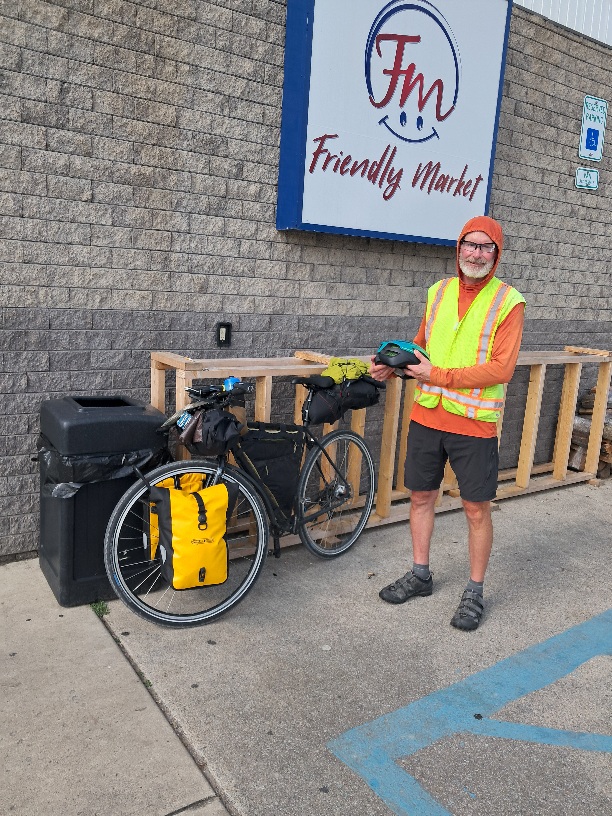 Then on to Buffalo using the State Route 16. We met transam cyclist Mike outside the filling station, rather neatly he has cycled from home in Wisconsin to Anacortes near Seattle thus doing a large chunk of the route going West, then trained back home and is doing the other chunk going East to Bar Harbor on the Maine coast. So he has done the Northern Tier partially westwards and partially eastwards and with a nice week off in the middle (I am starting to dream of the sofa and bed at home). Just beyond Buffalo on the 16 we found the Dollar General where we found coconut icecreams in a six pack. They are small enough to eat three. And finally we wound up at Dream Acres Campground - on the 16 just a bit before Monon. It's superb being only $10 for a tent with bikes, and having a swimming pool open until 7pm and good showers and toilets. Mike also turned up here since his more easterly campground was flooded. We have seen flooded areas of fields and even went through a small flood on the way here....