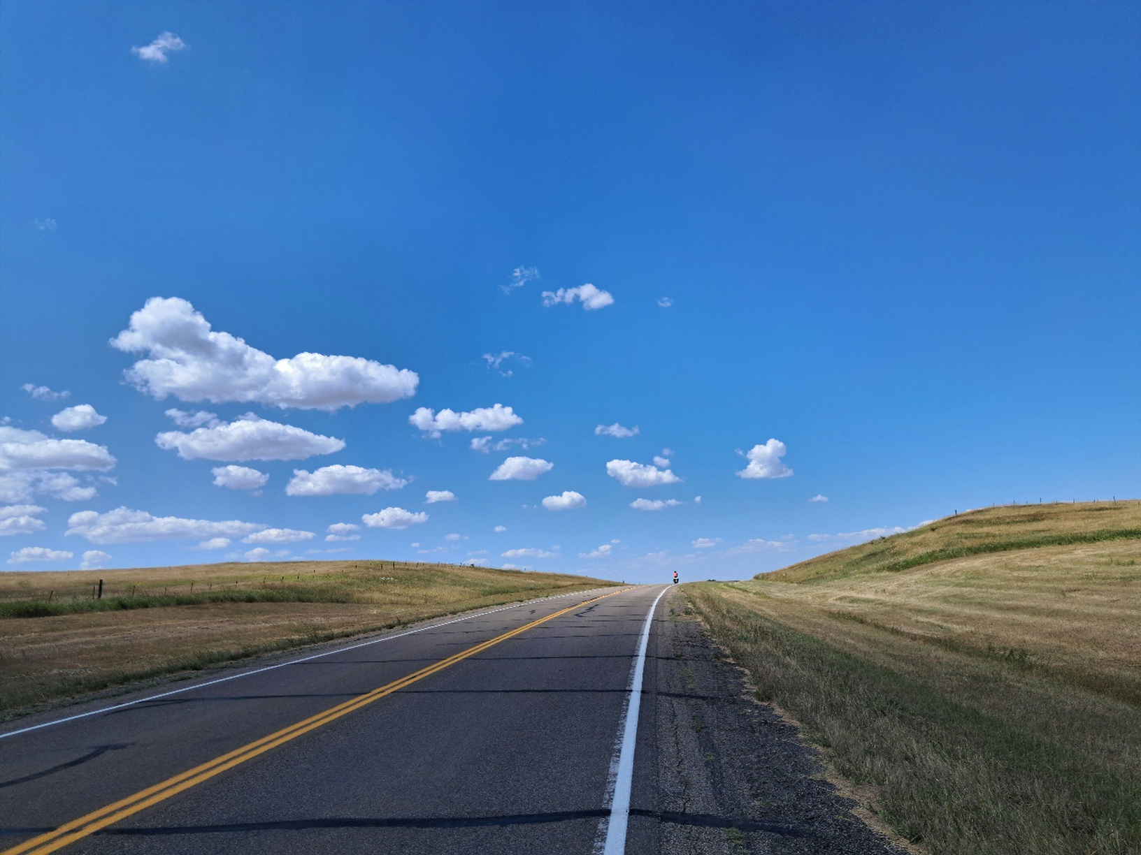 On the way there we met four cyclists - two pairs - Norwegians pulling trailers behind carbon bikes (which don't generally take panniers - no fittings to the frame) called Hedger and Knut. They were travelling fairly fast, heading for Bay Harbour in Maine. They talked about some impressive charity rides they'd done - including Oslo to Paris for sick children. The other pair were Swiss and called Jack and Ernst - today is the Swiss National Day - wearing the official Adventure Cycling cycle shirt for the Northern Tier. The had all been travelling together for a few days and were all meeting at a motel in Bismarck. I had to mention that it is also Yorkshire Day. It was great chatting and they discussed the excellent tailwind while we said it was hard work with this headwind, etc. As it was the headwind gave up in the middle of the afternoon. We eventually reached New Salem which had a superb supermarket - and a hopeless 'Pioneers Park' - not even a park bench to sit on. It did have a swimming pool though we did not use it - we were running late due to the headwind. We carried on to the interstate and did a few miles more and, oh joy, the headwind relented and we pushed along well. Interstates are fine for cycling, you do need to stick on the shoulder, avoid the rumble strips and keep well away from the traffic - the trucks have a weather system around them of swirling winds and dust. After leaving the interstate we soon reached Glen Ullin, shopped (quite decent Super Valu) and found the campground to the west of the town. The skies today have seemed bigger and deeper blue - we are gaining altitude (we're at about 2000' above sea level, compared with the 1000' near the Mississippi). The photo is mainly for those little fluffy clouds and that deeper blue. We are here.
