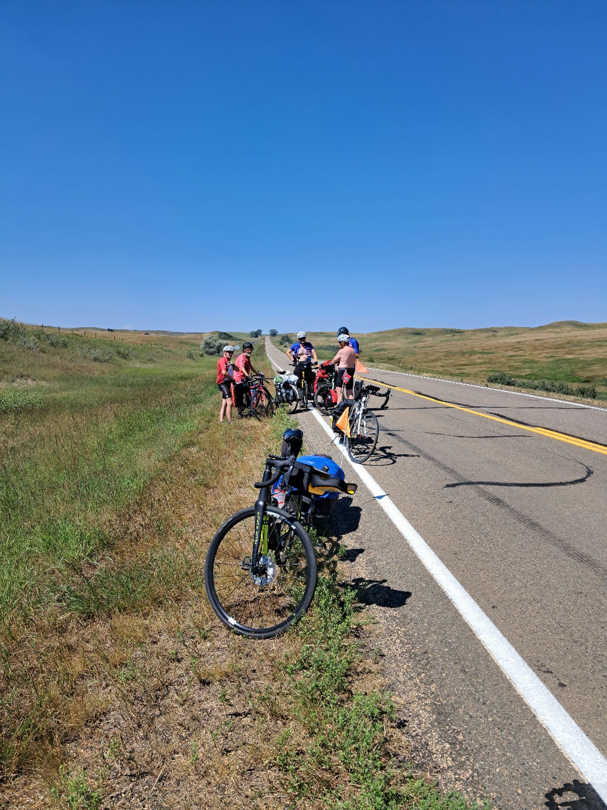 The cycling day had three parts. First of all a ride around suburban Bismarck and Mandan - the thing that separates these two cities is the River Missouri, which we crossed singing 'across the wide Missouri' which we've sung, as a mass singalong, in so many folk clubs - see the Wikipedia entry. The song is about travelling down the Missouri River. This took up the first ten miles. Then we cycled against a moderate NW headwind to New Salem.