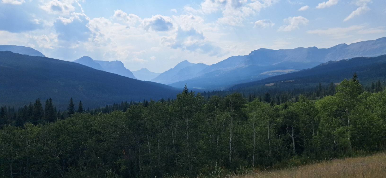 We set off at about 9.30am which is good enough, but almost immediately came to a halt outside a outdoor shop where we debated the question of bear spray. We don't want to hurt a bear but in the very unlikely case that a bear ventures into the local roads as we pass, we don't want to be defenceless. Art (Zarko), a few days back had said you could loan or hire bear spray but this doesn't seem an option here in Cut Bank and the salesman told me some scary stories where if the victim had possessed bear spray it would have made all the difference very likely. Well we now have bear spray. But it cannot go in a plane and has no use in a country that has no bears... so we will have to give it away at some point - Seattle sports and outdoor shop probably. It has added a dollop to our weight. Then we headed off towards Browning - pretty flat - caught the tail-end of a thunderstorm at Browning with some hail and rain and then bashed on along the 89 towards Saint Mary. Guy nearly had a puncture just before Browning - he noticed a clunking noise from his front tyre - and removed a piece of metal strands and rubber from a tyre. In fact the road through the Blackfeet reservation was the most littered with broken bottles that we have yet seen in 3500 miles ofvthe USA. Drink and chuck the bottle out of the window....The 31 miles of road on the 89, after Browning, was a replacement for the official route (Northern Tier) which goes into Canada before getting to St Mary's and which is not viable for us with our 90 day visa waivers. The 89 was flattish until we reached Kiowa and turned north, after that we had a small col followed by a bigger col - over the 6000' contour. Nicely graded roads though. After the second col it was downhill for 1500' at least to St Mary with not much of a hard shoulder to cycle in - but the road was quiet and long periods were spent on the main carriageway. We are now camping at Johnson's RV and camping, replete with salad and red wine (a glass each from a small carton). It was amazing how quickly we finished with the prairie which we've been crossing for over a 1000 miles - and started on mountain passes. There must be some sort of geological change... We are here.